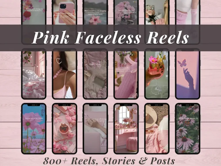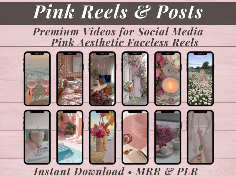 Pink Faceless Reels Aesthetic Instagram Stories Posts Master Resell Rights MRR PLR Content Creator Bundle DFY Pink Digital Marketing Library